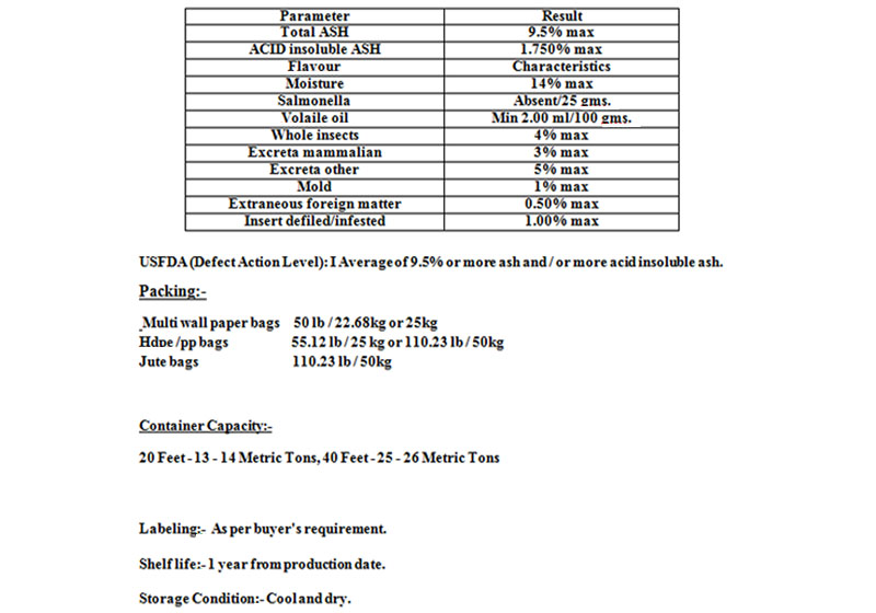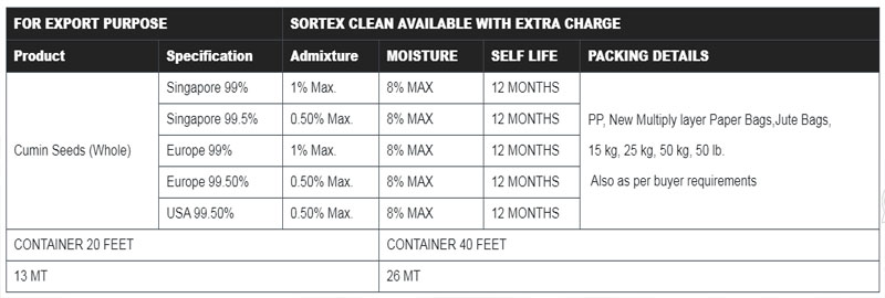Cumin is native to the Levant and Upper Egypt. Cumin was known to the Egyptians five millennia ago; the seeds have been found in the Old kingdom Pyramids. It now grows in most hot countries especially India, North Africa, China and the Americas. In southern Europe, it represented greed, while in Germany it was used by newlyweds as a symbol to ensure loyalty to one another. The Romans and the Greeks used it medicinally and cosmetically to induce a pallid complexion. The spice is specially associated with Morocco, where it is often smelt in the abundant street cookery of the medians. Cumin is the seed of a small umbelliferous plant and is popularly used for food flavoring and aroma. Its flavor is pungent, powerful, sharp and slightly bitter. The seeds of the plant are used in whole or powdered form in food processing industry. Cumin is seed of an annual small herb It is widely one of the widely used spices in our day-to-day cuisines. Cumin along with Coriander forms a major ingredient of Curry Powder and other Spice Blends. It is mainly used in spicy foods. Cumin, also called as “Sugandhan” i.e. Good Smell in ancient times has its popularity spread from Latin America to Africa and all over Asia. In Indian recipe, cumin is frequently confused with caraway, which it resembles in appearance though not in Taste, cumin being far more powerful.